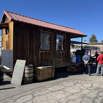 Our tasting room features a copper top bar, hand-hewn beams, and vintage brick with views of the Sherwins. We also have a private tasting area with its own bar and seating that can be reserved in advance. Call or email us to schedule a private tasting.